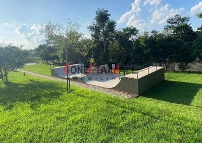 Portaria 24h, segurança 24h, energia Solar, ponto para drone delivery, internet de fibra óptica, pavimentação em bloquetes, central de ecomendas, parquinhos, SPA, churrasqueiras, praça do fogo, academia, mirante e camarotes, horta orgânica e pomar, piscina praia, beach tênis, vôlei de areia e campo de futebol, brinquedoteca, estúdio de vidro e sala de games, playgrounds, cinema ao ar livre, coworking, escritório sem paredes, cozinha dos amigos, sunset, bar, salão de festas, praça do fogo, espaço zen e canto da fé,